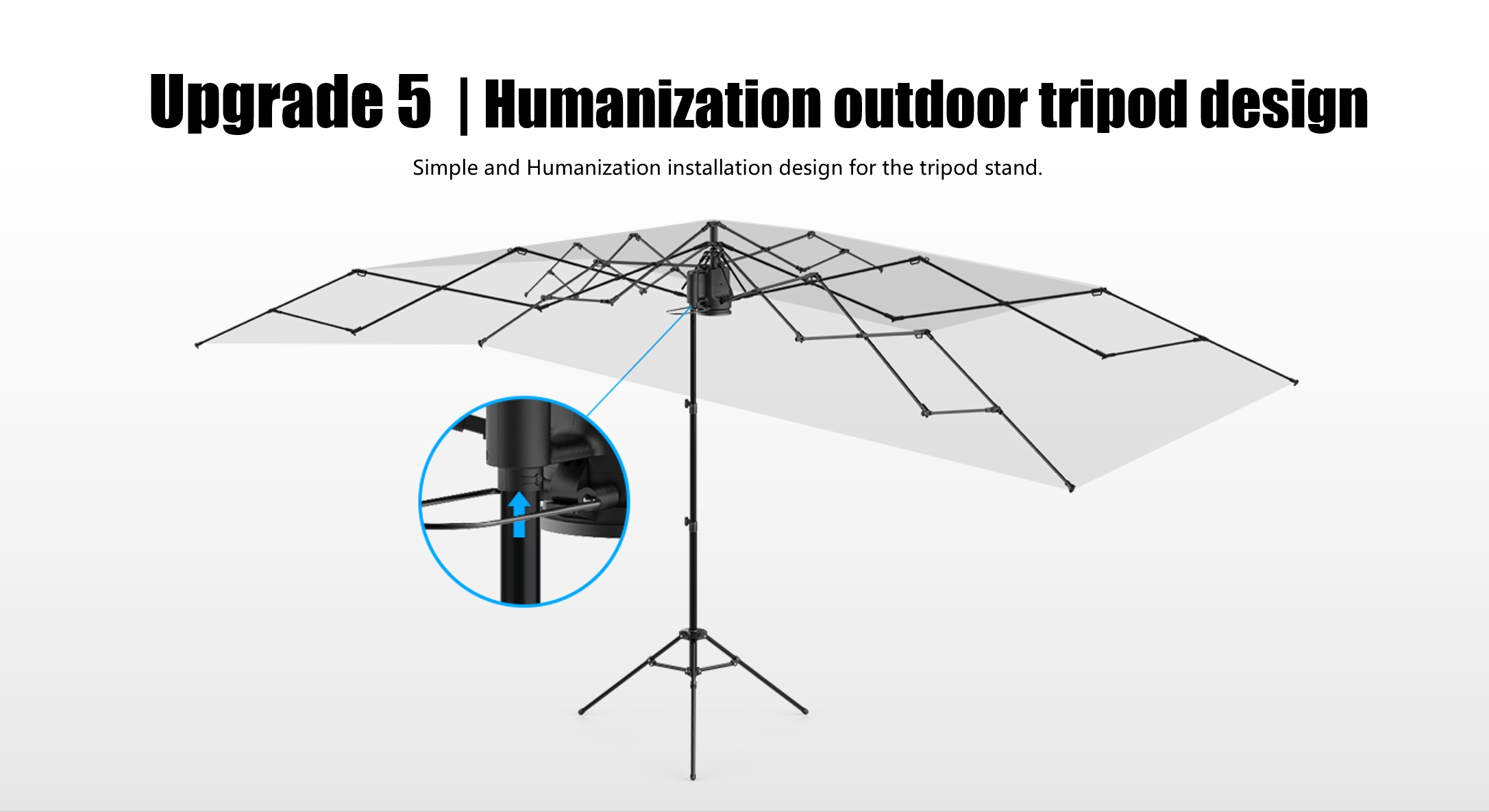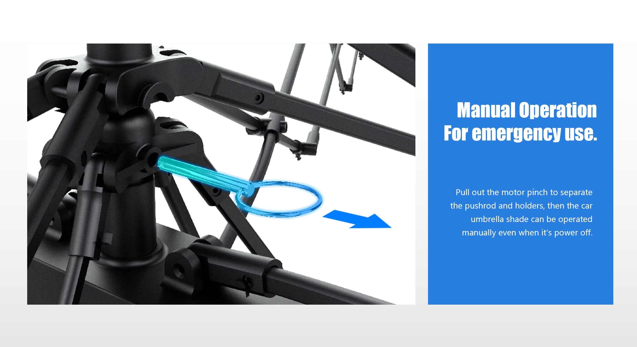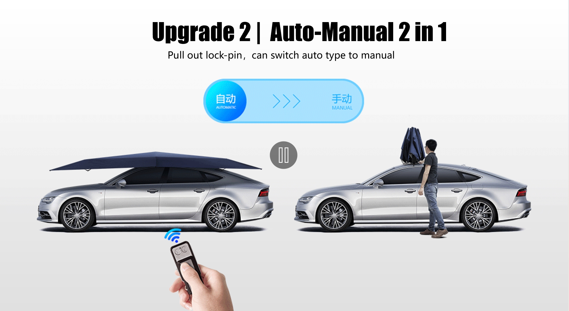 Además de subir y bajar automáticamente mediante control remoto, también se puede cambiar al modo manual en cualquier momento para adaptarse a diferentes preferencias. El motor optimizado consume menos energía y ahorra más batería. La estructura de trípode para exteriores especialmente diseñada garantiza una instalación más estable y permite una instalación rápida fuera del vehículo, lo que facilita la creación de un parasol temporal para viajes de campamento.
