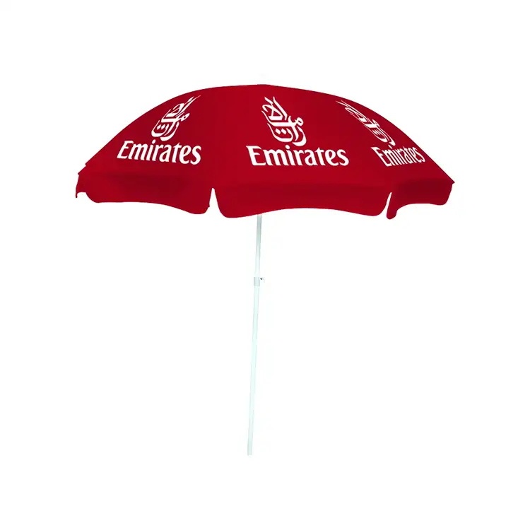 Sombrilla de playa para evitar la luz solar directa en la playa en la gran sombrilla. El diseño de la sombrilla de playa se basa en la sombrilla de patio y su evolución. Pero ahora, con el desarrollo de un estilo minimalista y una industria de ocio comercial, se han utilizado ampliamente para sombrillas de playa en la playa, su hermosa forma, efecto de protección solar eficaz y económica para fines publicitarios comerciales al aire libre son más propicios para la promoción de su tiempo. La sombrilla de playa es cómoda de mover, instalación sencilla, bajo costo y pueden ser ventajas del anuncio del logotipo.