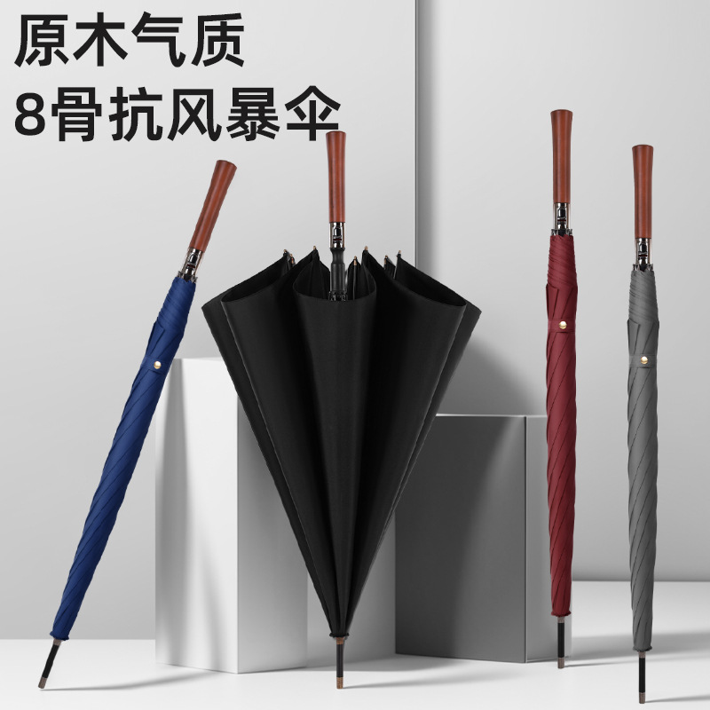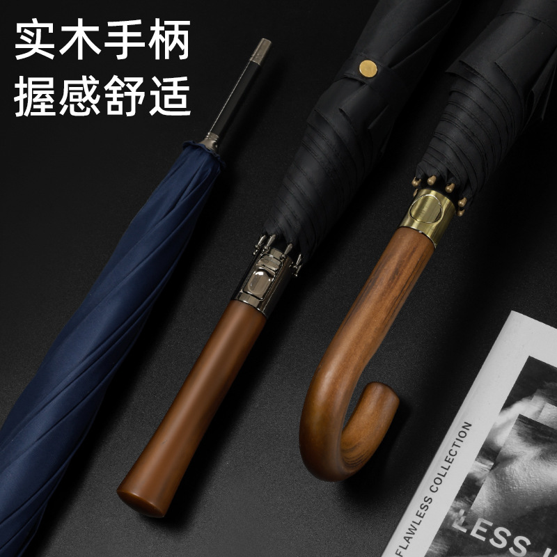 Estilo muy combinado: el color de la superficie del paraguas, el material del mango (madera maciza/metal/cuero) y el diseño del empaque se pueden ajustar según el tono de la marca, lo que permite que el producto se integre perfectamente en el sistema visual de la marca y se convierta en el regalo de alta gama preferido.